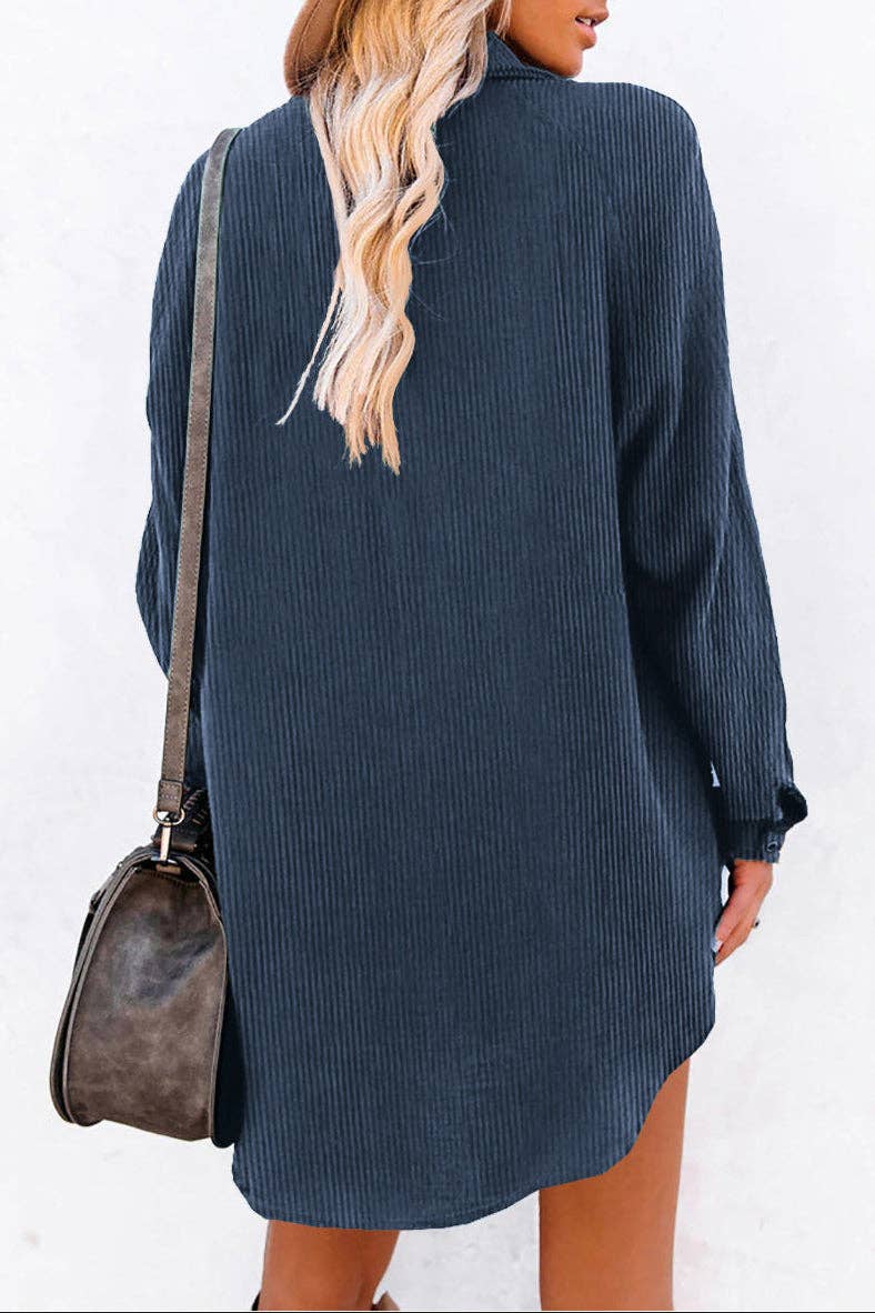 Crafted from sturdy corduroy, this dress offers lasting quality and warmth ideal for colder seasons. Complete with a collared neckline, button front closure, and long sleeves that can be rolled to your liking, this shirt-inspired design ensures a timeless appeal. Style it with tall boots to achieve a sophisticated western-inspired ensemble. 100% Polyester