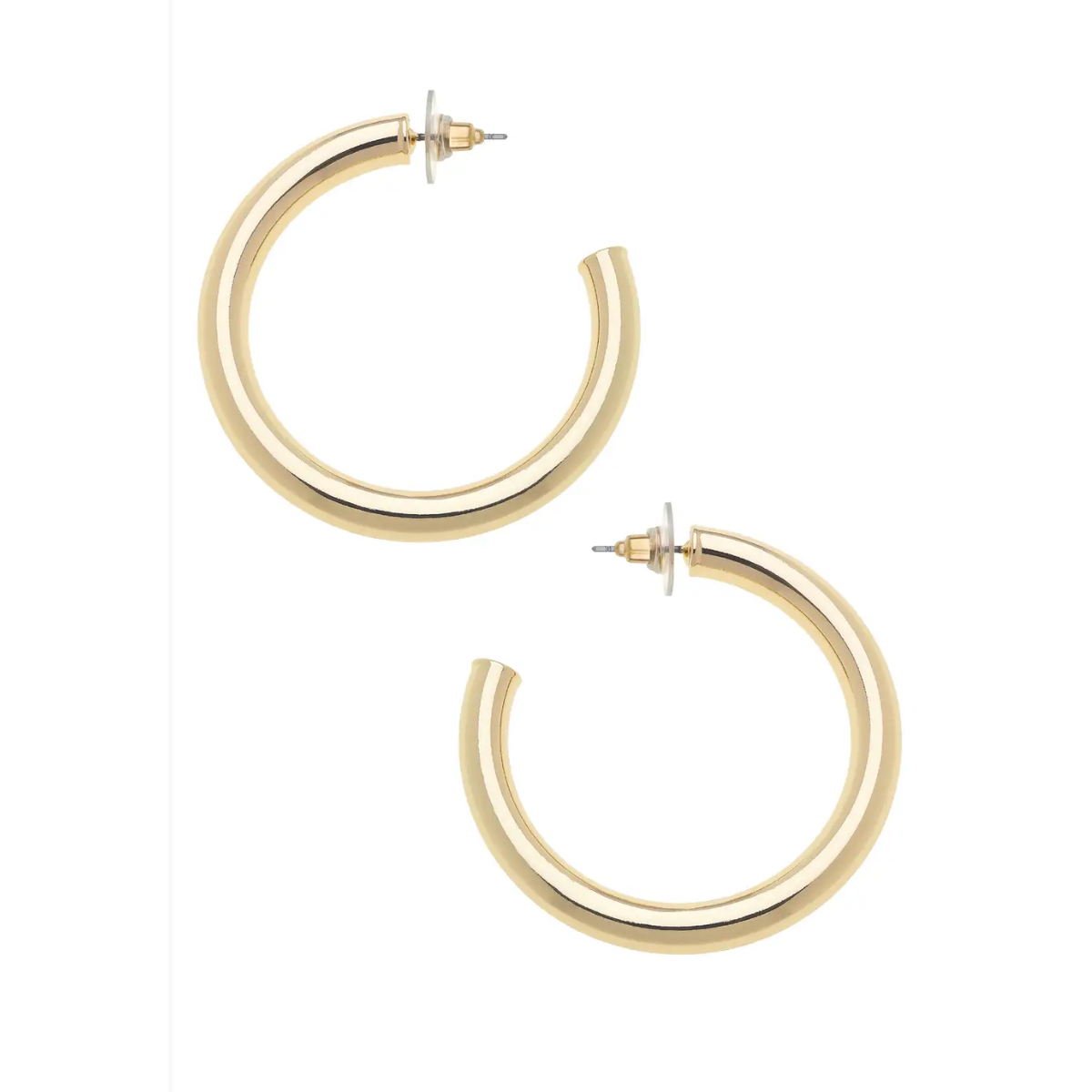 The Isla Hoop Earrings bring timeless elegance to your accessory collection. Their sleek shiny gold finish and versatile design make them a go-to piece for any occasion.