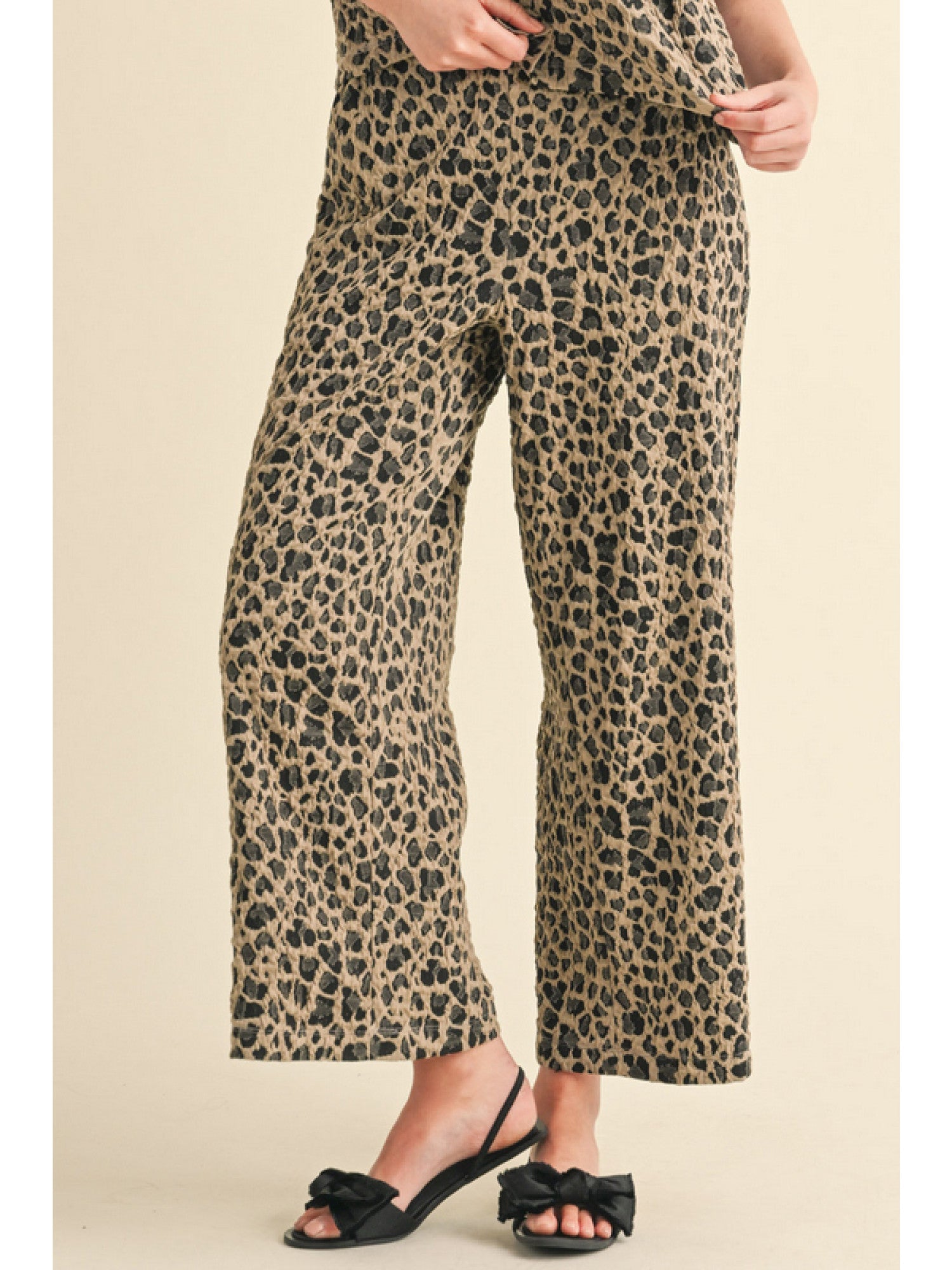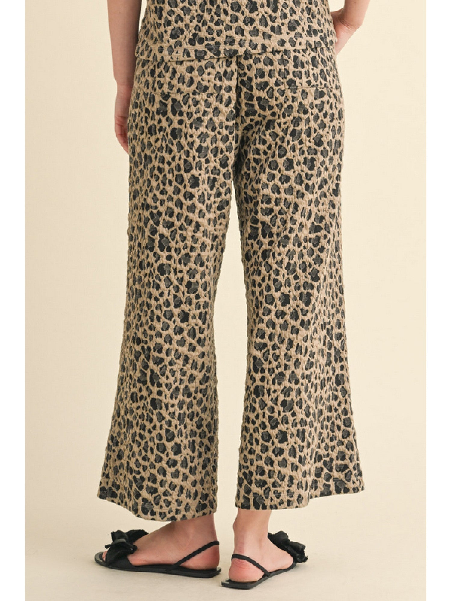 Leopard print pants with stretch-band waistline, and loose fits legs.